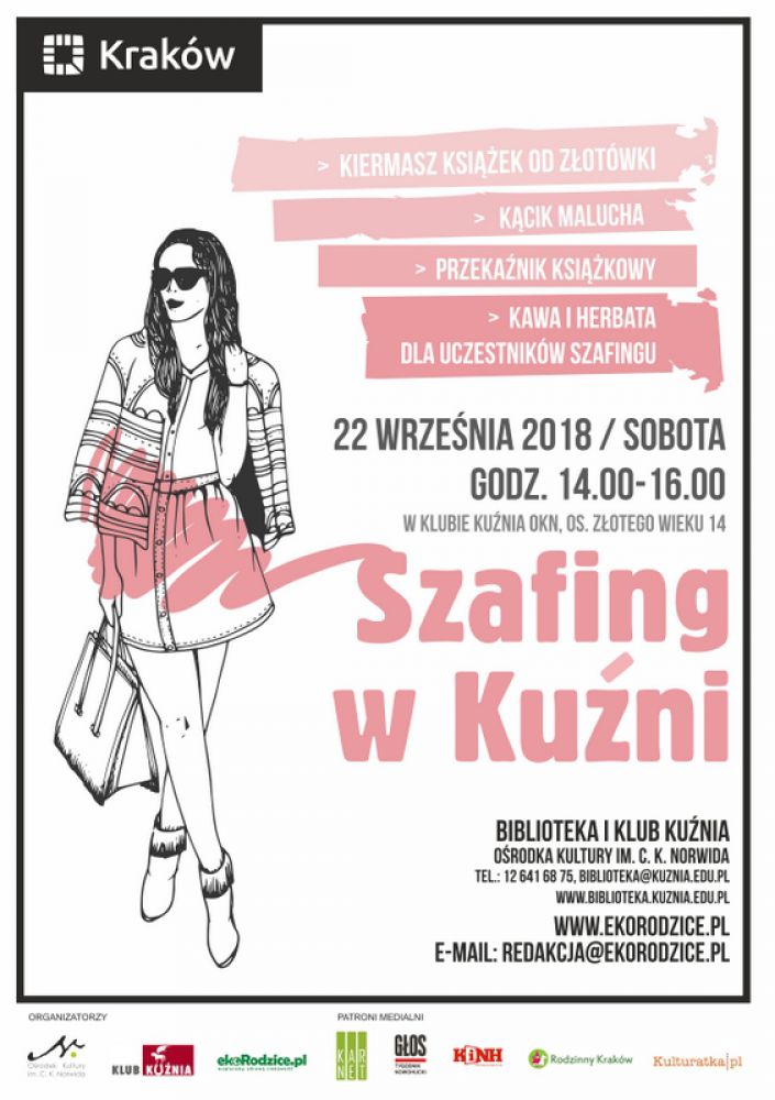 W trakcie Szafingu: Przekanik ksišżkowy, Kiermasz ksišżek od złotówki, Kšcik Malucha, biblioteczne propozycje popularnonaukowe i poradnikowe rodziców, których dzieci rozpoczynajš edukację przedszkolnš i szkolnš. Kawa i herbata dla uczestników Szafingu. Wstęp wolny.