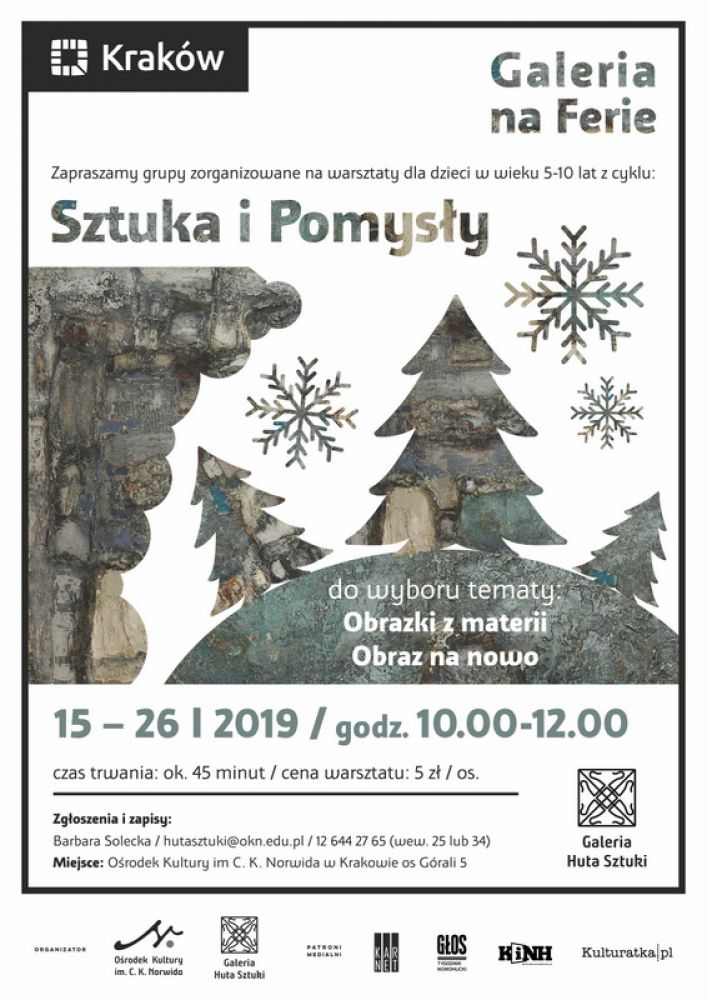 Zapisy: 12 644 27 65 w. 25 lub 34, hutasztuki@okn.edu.pl