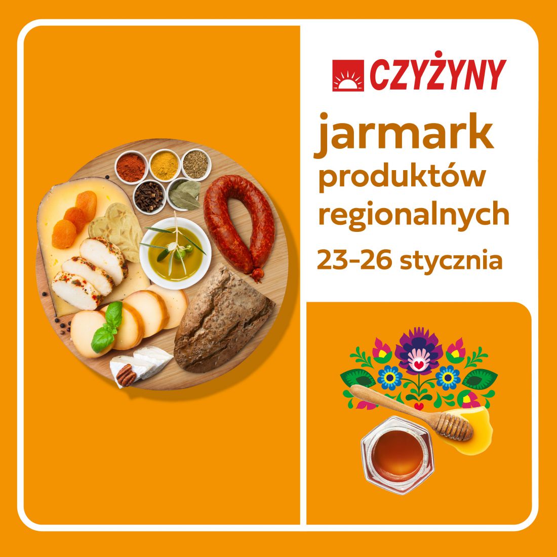 Tradycyjny jarmark regionalny w Centrum Handlowym Czyżyny to œwietna okazja do odkrycia lokalnych przysmaków. W czasie jego trwania 12 wystawców z całej Polski zaprezentuje to, co najlepsze w ich regionach – tradycyjne produkty spożywcze wytwarzane z wysokiej jakoœci składników.