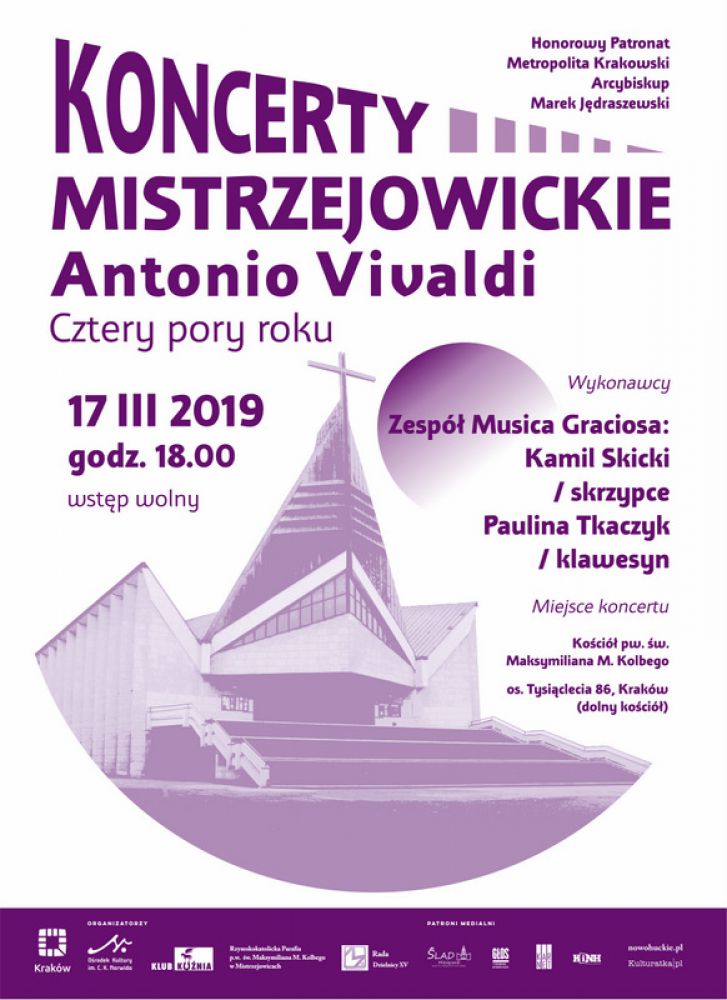Cztery pory roku, w ramach cyklu Koncerty Mistrzejowickie zostanš wykonane w nowatorskiej formie na dwa instrumenty: skrzypce solo i klawesyn w roli orkiestry. Wystšpiš znani krakowscy artyci: Kamil Skicki i Paulina Tkaczyk.