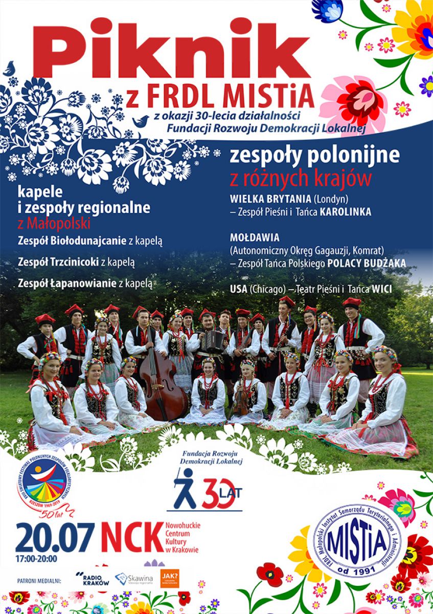20 lipca 2019, w Nowohuckim Centrum Kultury z okazji obchodów 30-lecia działalnoci Fundacji Rozwoju Demokracji odbędzie się plenerowy koncert jubileuszowy zespołów polonijnych