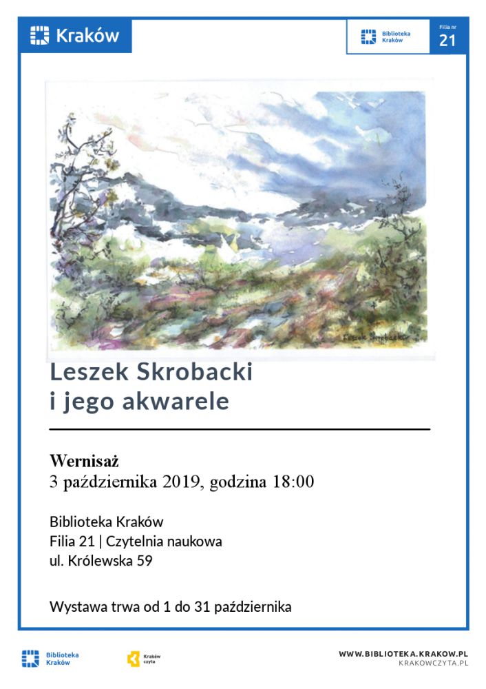 Spotkanie z artyst i jego akwarelami. Leszek Skrobacki, pierwszy skrzypek w Orkiestrze Opery Krakowskiej, pedagog Szkoy Podstawowej i Liceum Muzycznego w Krakowie oraz krakowskiej Akademii Muzycznej. Jego akwarele odznaczaj si niezwykle pikn palet barw. Przedstawiaj krajobrazy o rnych porach roku. Przyroda jest w nich wrcz bajkowa, spokojna i sielska. Jest artyst amatorem z tradycjami rodzinnymi. Maluje dla siebie, rodziny oraz przyjaci.
