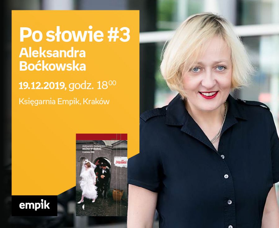 Trzy ostatnie ksišżki Aleksandry Boćkowskiej – „To nie sš moje wielbłšdy. O modzie w PRL”, „Księżyc z peweksu. O luksusie w PRL” oraz „Można wybierać. 4 czerwca 1989” (Wyd. Czarne) – układajš się w swoistš trylogię. Co łšczy a co dzieli te teksty, a przede wszystkim: jak wyglšdała praca nad nimi? Dziennikarka i reporterka będzie goœciem Marcina Wilka w trzecim spotkaniu z cyklu "Po Słowie".