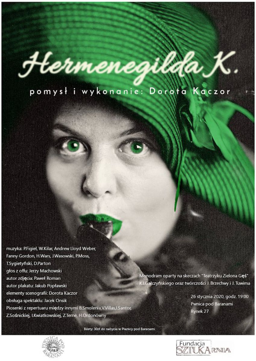 W przedstawieniu usłyszymy piosenki z repertuaru między innymi Violetty Villas, Hanki Ordonówny,Bohdana Smolenia,Ireny Kwiatkowskiej,Zdzisławy Sonickiej,Zofii Terne czy Ireny Santor. Przedstawienie to pokaz umiejętnoci aktorskich, a zarazem ukłon w stronę artystów,którzy odchodzš zapomniani. ''Hermenegilda K'' to tragikomedia o samotnoci, odrzuceniu i próbie radzenia sobie z nieuchronnym przemijaniem.''
