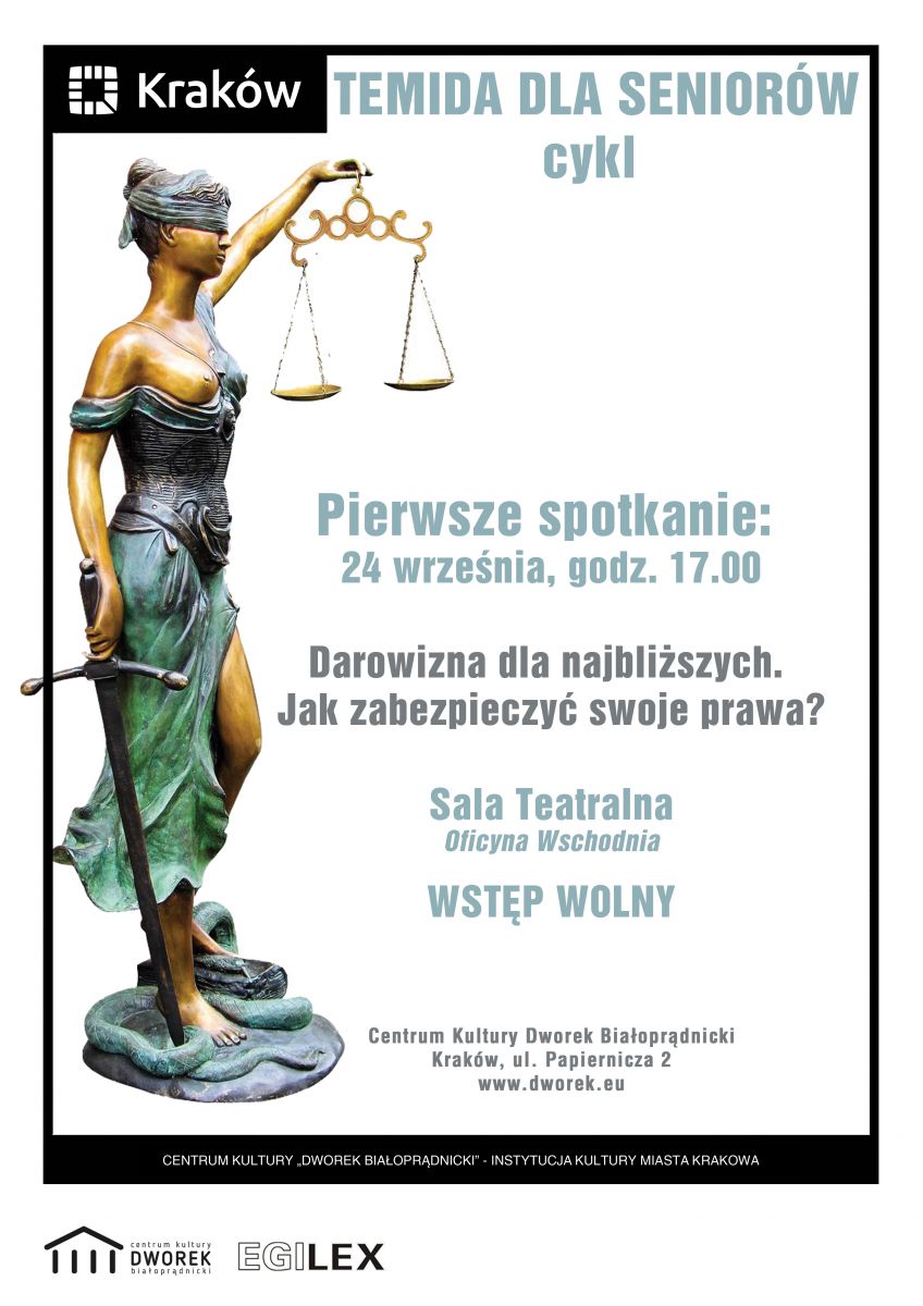 W Dworku Białopršdnickim rusza senioralna szkoła prawa czyli edukacyjny cykl pod nazwš Spotkania z Temidš. Uczestnicy projektu dowiedzš się jak unikać pułapek zwišzanych z nieznajomociš podstawowych przepisów. Pierwsze spotkanie dotyczšce darowizny dla najbliższych odbędzie się w czwartek, 24 wrzenia o godz. 17.00. Sala teatralna (oficyna wschodnia, ul. Papiernicza 2), wstęp wolny.