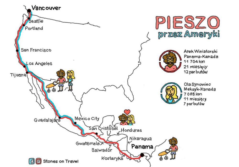 Arek Winiatorski po przejechaniu Ameryki Południowej autostopem stwierdził, że wcišż porusza się za szybko. By jeszcze lepiej poznawać wiat, postanowił od Panamy przemierzać go... PIESZO! Przeszedł całš Amerykę Centralnš i to wcale nie najprostszš drogš, bo przez góry, zdobywajšc po drodze najwyższy szczyt każdego odwiedzanego kraju. Na południu Meksyku poznał miłoć swojego życia Olę Synowiec, z którš przemierzył pieszo kolejne 7 tysięcy kilometrów, aż do Kanady. Razem zmierzyli się z własnymi słabociami, niebezpieczeństwami drogi, pustyniami, mrozami, ruchliwymi metropoliami i sięgajšcymi 3000 metrów przewyższeniami.
