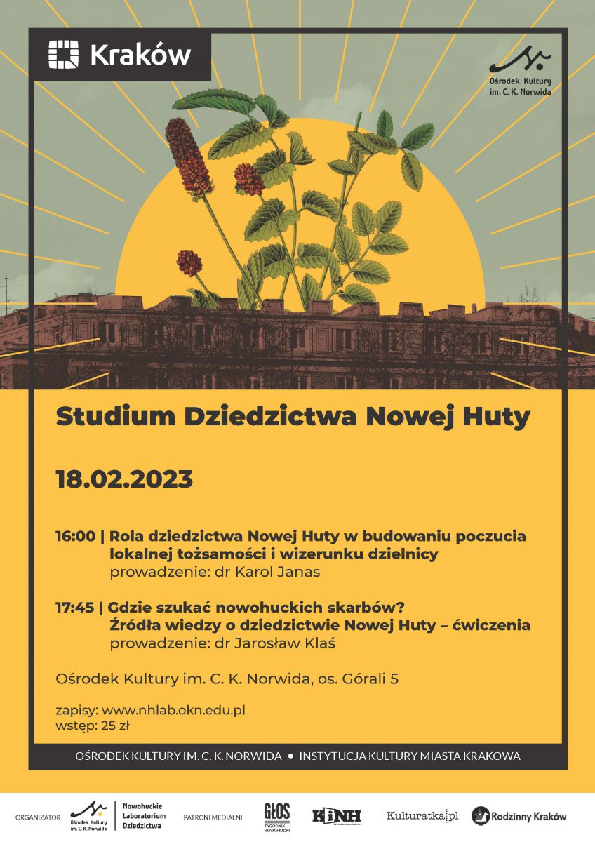 W lutym, w ramach Studium Dziedzictwa Nowej Huty, zapraszamy na wykład prowadzony przez dr. Karola Janasa oraz ćwiczenia prowadzone przez dr. Jarosława Klasia. Szczegółowe informacje dotyczące zajęć oraz zapisów znajdują się poniżej.