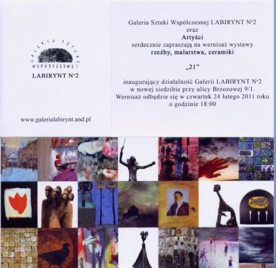 to 21 lat istnienia krakowskiej Galerii Labirynt, to 21 artystów: malarzy, grafików, rzebiarzy i ceramików, którzy prezentowali swojš twórczoć na wystawach indywidualnych zrealizowanych przez Galerię Labirynt w latach minionych w jej dwóch siedzibach oraz w muzeach i galeriach w Polsce, Europie i USA.