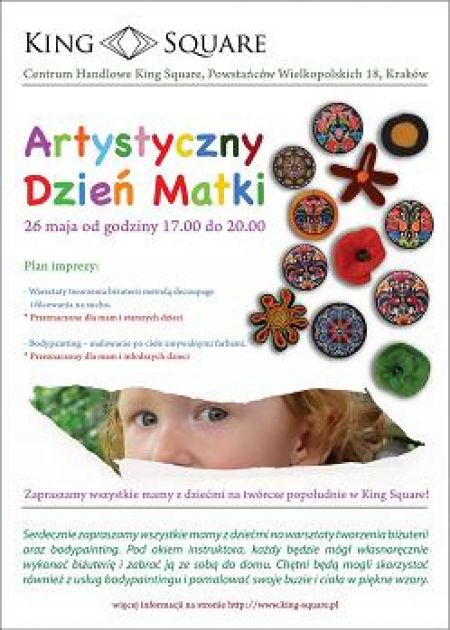 26 maja o godzinie 17:00 w krakowskim Centrum Handlowym King Square wszystkie mamy oraz ich pociechy będš miały niepowtarzalnš okazję nauczyć się sztuki tworzenia biżuterii.