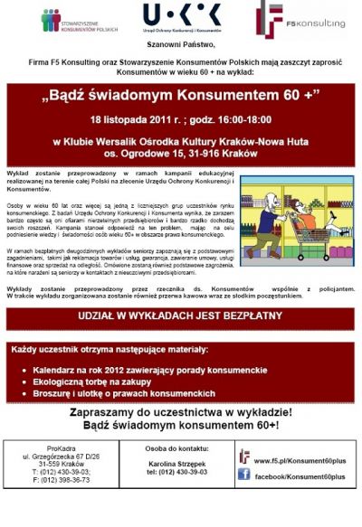 Klub Wersalik Oœrodka Kultury Kraków-Nowa Huta (os. Ogrodowe 15) zaprasza 18 listopada (pištek) 2011 r. o godz. 16.00 na wykład dot. praw konsumenta.
