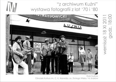 Zapraszamy do Klubu KuŸnia Oœrodka Kultury im. C.K. Norwida na os. na otwarcie wystawy "Z archiwum KuŸni". W Galerii „m” będzie można zobaczyć ponad dwadzieœcia fotografii z lat ’70, z poczštków działalnoœci klubu. Obejrzymy zdjęcia, spotkamy się z ludŸmi zwišzanymi z dawnš „KuŸniš”, zajrzymy do starych, starannie prowadzonych przez pracowników kronik, powspominamy, porównamy doœwiadczenia. Szczególnie zapraszamy osoby, które w jakikolwiek sposób były zwišzane z „KuŸniš” – byłych i obecnych pracowników, instruktorów, bywalców i sympatyków klubu. Liczymy na to, że będzie sentymentalnie, ale zarazem zabawnie.