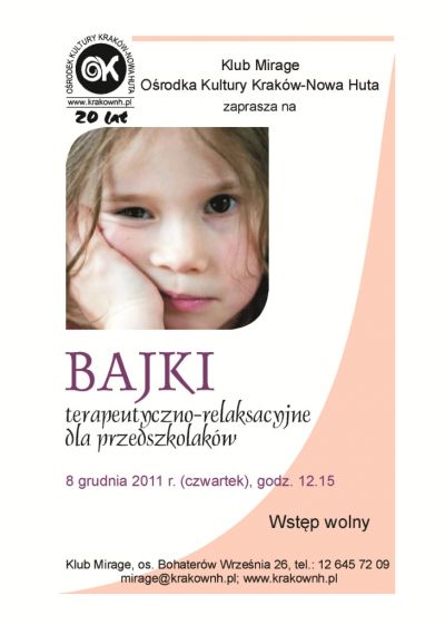 Cykliczne zajęcia edukacyjno – relaksacyjne dla dzieci przedszkolnych z elementami dramy i ćwiczeń oddechowych, prowadzone przez Nowohuckš Bibliotekę Publicznš w Klubie Mirage Oœrodka Kultury Kraków-Nowa Huta. Zajęcia polegajš na czytaniu i analizie bajek. Ich celem jest niwelowanie różnorodnych lęków i problemów rozwojowych u dzieci, poprzez zabawę, ruch i aktywne uczestnictwo.