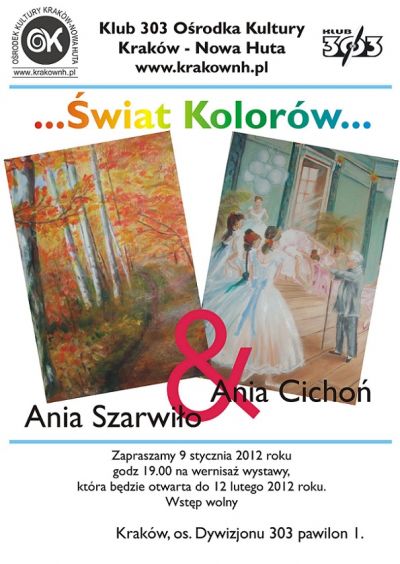 Klub 303 Orodka Kultury Krakw-Nowa Huta (os. Dywizjonu 303 1) zaprasza 9 stycznia (poniedziaek) 2012 r. o godz. 19.00 na wernisa prac Anny Cicho i Anny Szarwio.