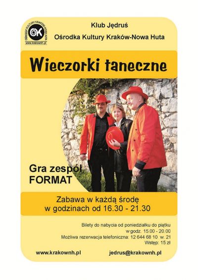 Klub Jędruœ Oœrodka Kultury Kraków-Nowa Huta (os. Centrum A 6a) zaprasza dorosłych i seniorów na wieczorek taneczny na zakończenie karnawału.