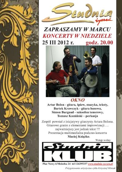 Zesp powsta z inicjatywy gitarzysty Artura Bolona. Gitarowe granie z elementami improwizacji. Najwaniejszy jest jednak tekst !!! Prezentacja multimedialna podczas koncertu Maciej Ksiko.