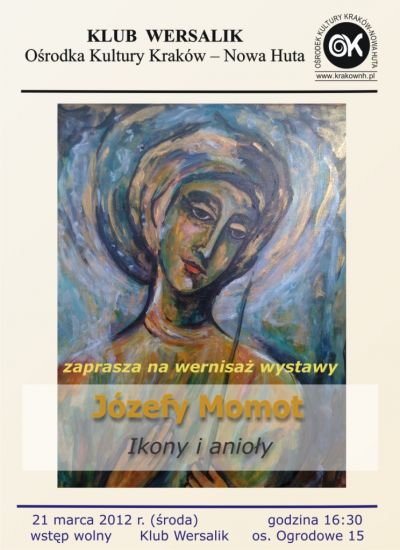 Wernisa wystawy prac Jzefy Momot prezentujcy ikony i anioy. Spotkanie, ktre odbdzie si w Klubie Wersalik Orodka Kultury Krakw-Nowa Huta poczone bdzie z wieczorem poezji.