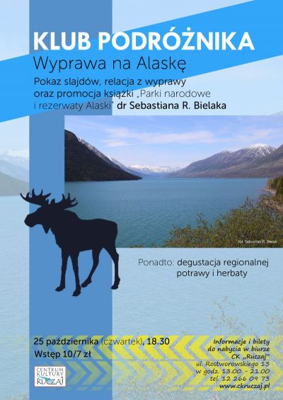Zapraszamy na spotkanie z Sebastianem R. Bielakiem – podróżnikiem, fotografikiem-amatorem i przyrodnikiem, który spędził trzy miesišce na Alasce zwiedzajšc Półwysep Kenai oraz Wyżynę Œrodkowego Jukonu.