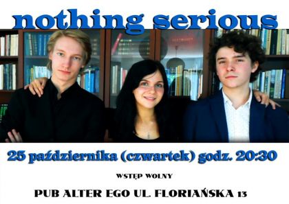 Krakowski zespół, Nothing Serious, został założony w 2011 r. przez grupę połšczonych wspólnš pasjš młodych muzyków i już wówczas został dostrzeżony na XXIV Festiwalu Talenty Małopolski 2011 gdzie otrzymał nagrodę głównš. Formacja to akustyczne trio ciekawie łšczšce różne gatunki muzyki od country, folku celtyckiego i argentyńskiego po blues i jazz.