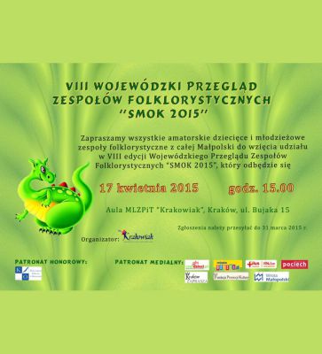 WOJEWÓDZKI PRZEGLĄD ZESPOŁÓW FOLKLORYSTYCZNY „SMOK” to wydarzenie, którego organizatorem jest Międzyszkolny Ludowy Zespół Pieśni i Tańca „Krakowiak”.