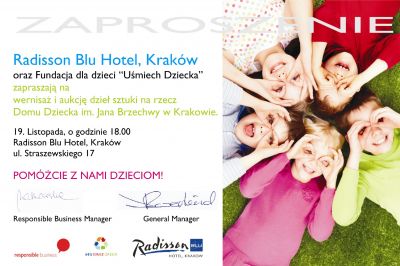 Już w najbliższy piątek, 19. listopada o godzinie 18.00, w Radisson Blu Hotel Kraków odbędzie się charytatywna aukcja dzieł sztuki – „Podaruj Dzieciom Uśmiech”. Dochód ze sprzedaży obrazów, rzeźb i grafik trafi do krakowskiego Domu Dziecka im. Jana Brzechwy.