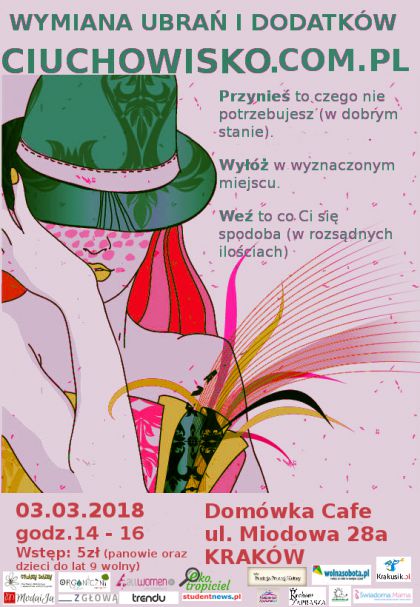 Kolejna edycja szalonej wymiany ubrań i dodatków czyli Krakowskiego Ciuchowiska już 3 marca. Widzimy się na Kazimierzu w Domówka Cafe (ul.Miodowa 28a).
