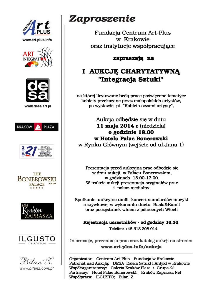 I AUKCJA CHARYTATYWNA - "INTEGRACJA SZTUKI" - temat prac: "Kobieta oczami artysty"