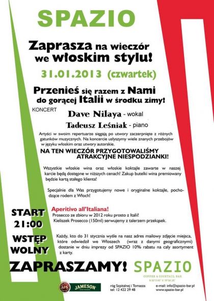Cafe Spazio zaprasza na wieczór we włoskim stylu!