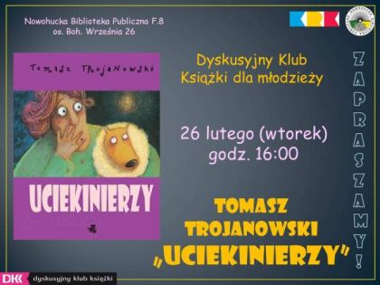 Najbliższe spotkanie w cyklu: "Tu czytamy" poświęcone będzie książce "Uciekinierzy" Tomasza Trojanowskiego, laureata Nagrody Literackiej im. Kornela Makuszyńskiego. W książce dzieją się rzeczy niezwykłe. Pingwin w zamrażarce, słoń na przystanku, kosmici, którzy zgubili swój talerz i historia kryminalna na dokładkę? – tematów do dyskusji podczas kolejnego spotkania nie zabraknie.