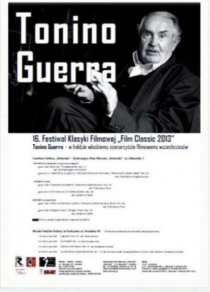 DKF "Rotunda" oraz Włoski Instytut Kultury w ramach 16. Festiwalu Klasyki Filmowej zapraszają na filmy ze scenariuszem Tonino Guerry - włoskiego scenarzysty wszechczasów.