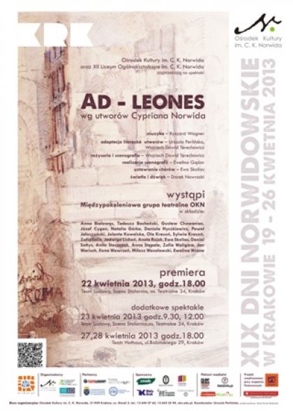 Ad – leones – nowela pióra Cypriana Norwida z 1882 roku stała się przedmiotem naszej kilkumiesięcznej pracy z powodu bliższego poznania stanowiska poety wobec miejsca sztuki i kultury w świecie.