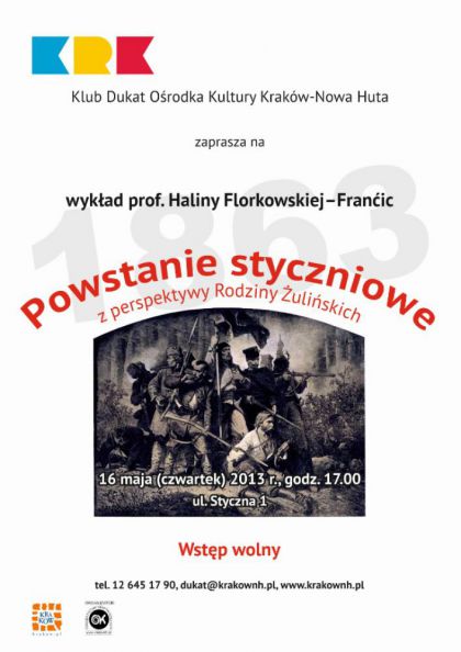 Klub Dukat Ośrodka Kultury Kraków-Nowa Huta (ul. Styczna 1) zaprasza 16 maja o godz. 17.00 na prelekcję o rodzinie Żulińskich - sześciu braciach, którzy walczyli w Powstaniu Styczniowym.