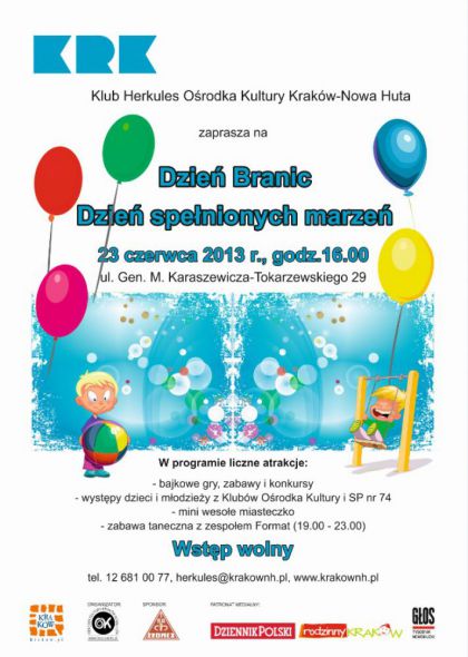 Rodzinna impreza plenerowa dla mieszkańców Branic i wszystkich tych, którzy chcieliby poznać to krakowskie osiedle. W programie wydarzenia znajdą się m.in.: występy dzieci i młodzieży, bajkowe gry, zabawy i konkursy z nagrodami. Nie zabraknie także tradycyjnych festynowych atrakcji: malowania twarzy, mini wesołego miasteczka, stoisk gastronomicznych czy kramów z zabawkami i słodkościami.