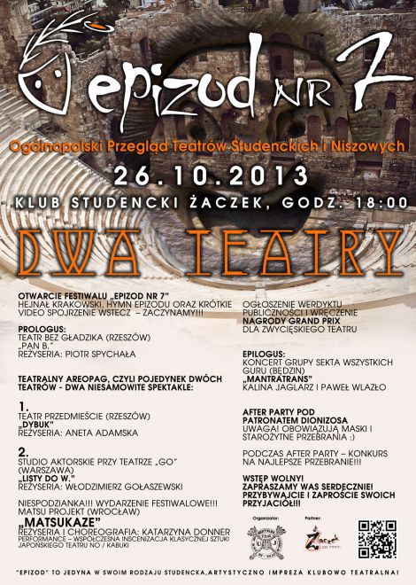 plakat epizodEPIZOD po raz kolejny już jest niepowtarzalną okazją do pokazania publiczności przedstawień teatralnych, które powstają z potrzeby twórczej kreacji, z dala od głównego, instytucjonalnego nurtu życia teatralnego.