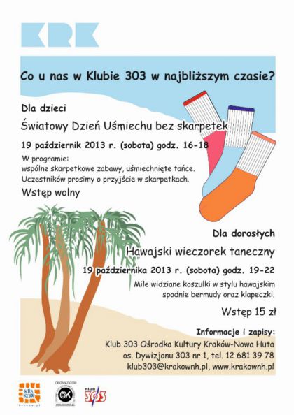Impreza dla dzieci, w programie której przewidziano między innymi wspólne skarpetkowe zabawy oraz uśmiechnięte tańce. Zadaniem każdego uczestnika jest przyjście w skarpetkach, które później będą mogły zostać wykorzystane do zabaw. Należy przynieść także zapasową parę skarpet, w której dzieci będą mogły wrócić do domu.