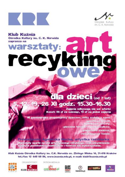 Warsztaty oparte są na idei artystycznego recyklingu, czyli odzyskiwaniu zużytych przedmiotów, materiałów i twórcze ich wykorzystanie.