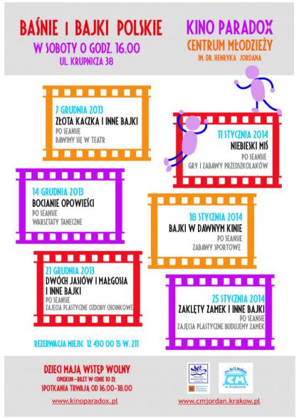 Spotkania filmowe trwają około 60 minut (w programie – zagadki, słodki poczęstunek i filmy), zajęcia dodatkowe po seansie – 45 min.