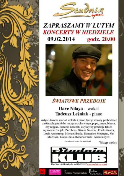 Klub Studnia Życzeń zaprasza na koncert włosko-polskiego duetu, w składzie: Dave Nilaya - wokal & Tadeusz Leśniak -piano.