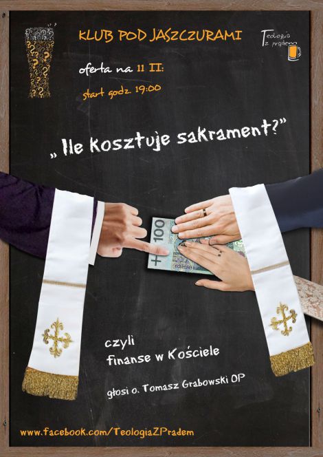 Na najbliższym spotkaniu porozmawiamy o finansach w Kościele, a spotkanie pt. "Ile kosztuje sakrament?" poprowadzi o. Tomasz Grabowski OP.