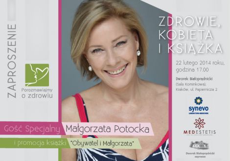 Gościem specjalnym najbliższego wydarzenia będzie znana polska aktorka, reżyserka i producentka - Małgorzata Potocka. Gwiazda porozmawia z nami na temat swojego podejścia do kwestii zdrowia, odpowiedniego trybu życia oraz swojej najnowszej książki „Obywatel