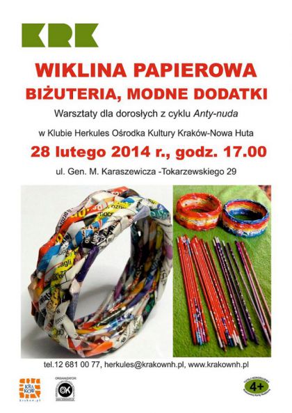 Klub Herkules Ośrodka Kultury Kraków-Nowa Huta (ul. Gen. M. Karaszewicza-Tokarzewskiego 29) zaprasza na warsztaty z cyklu Anty – nuda, które odbędą się 28 lutego o godz. 17.00.