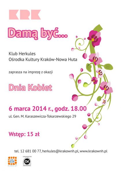 Na imprezie 6 marca o godz. 18.00 w Klubie Herkules Ośrodka Kultury Kraków-Nowa Huta (ul. Gen. M. Karaszewicza-Tokarzewskiego 29) panie będą mogły spędzić miło czas, słuchając i bawiąc się podczas programu kabaretowego w wykonaniu Radosława Omiecińskiego.