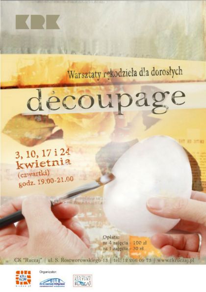 Zapraszamy na warsztaty decoupage'u w ramach cotygodniowych warsztatów rękodzieła artystycznego w Centrum Kultury "Ruczaj".