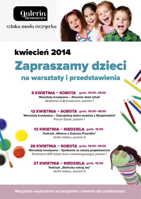 Wszystkie zajęcia w Galerii Bronowice są bezpłatne. Serdecznie zapraszamy!