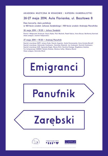 W tym roku obchodzimy rocznice urodzin dwóch wybitnych kompozytorów – emigrantów realnych i mentalnych, skazanych na ideową banicję lub mroki artystycznego zapomnienia. 100 lat temu urodził się Andrzej Panufnik – twórca wyklęty przez władze PRLu, którego twórczość od kliku lat skutecznie przywracana jest rodakom w wolnej Polsce. 160 lat temu przyszedł na świat Juliusz Zarębski – kompozytor i pianista wirtuoz, powoli odzyskujący należne mu miejsce w kanonie polskiej literatury muzycznej.