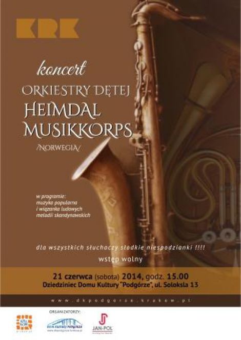 Na dziedzińcu siedziby DK Podgórze odbędzie się koncert norweskiej orkiestry Heimdal Musikkorps . W programie muzyka popularna i wiązanka ludowych melodii skandynawskich.