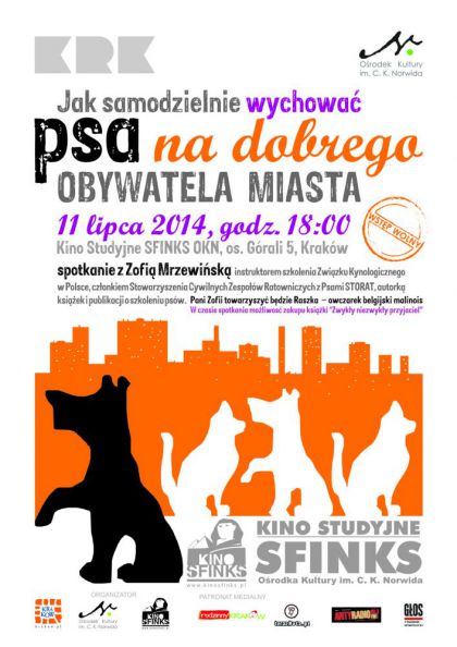 Kino Studyjne SFINKS Ośrodka Kultury im. C. K. Norwida serdecznie zaprasza na spotkanie z Zofią Mrzewińską, instruktorem szkolenia Związku Kynologicznego w Polsce, członkiem Stowarzyszenia Cywilnych Zespołów Ratowniczych z Psami STORAT, autorką książek