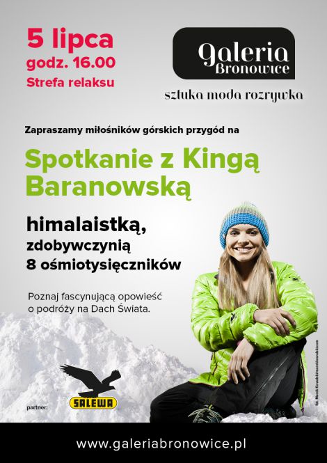Po spotkaniu, które odbędzie się w Strefie Relaksu (parter galerii), w sklepie Salewa można będzie zdobyć autograf Kingi Baranowskiej na pamiątkowej fotografii oraz zrobić sobie wspólne zdjęcie.