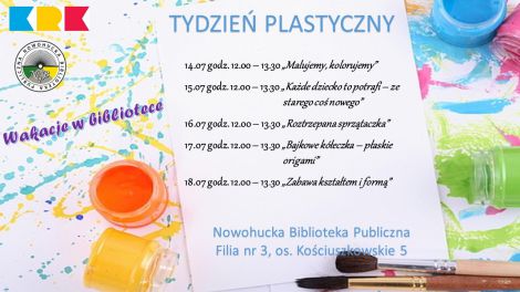 W ramach Akcji Lato 2014 w Filii nr 3 Nowohuckiej Biblioteki Publicznej w Krakowie trwa Tydzień Plastyczny pn. „Malujemy, kolorujemy”.