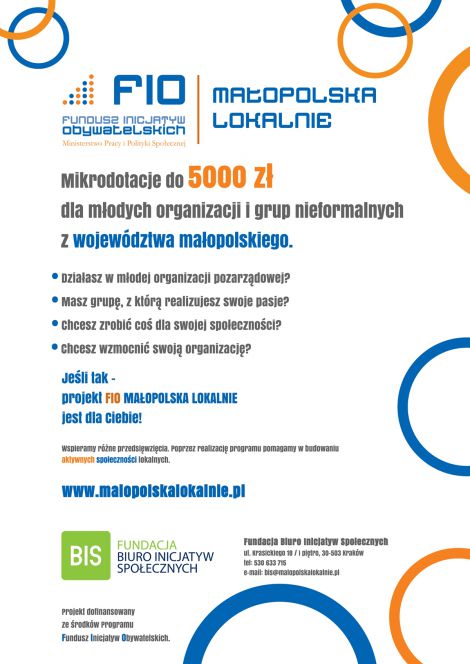 Fundacja Biuro Inicjatyw Społecznych zaprasza do udziału w spotkaniu informacyjnym dot. konkursu grantowego dla młodych organizacji pozarządowych i grup nieformalnych z terenu Krakowa.