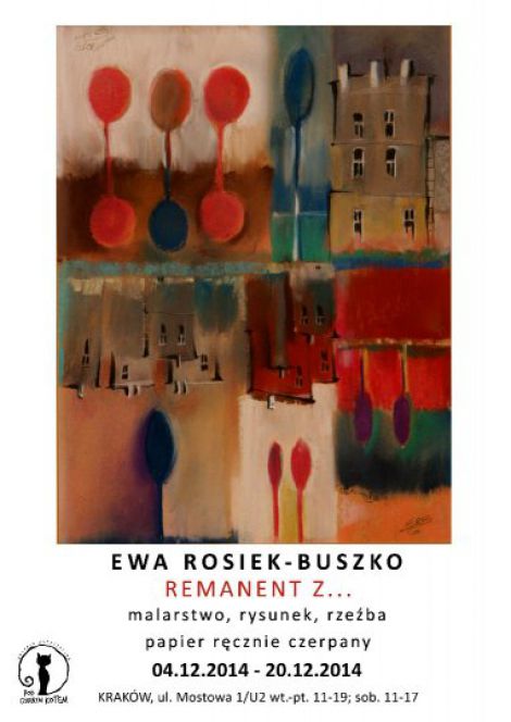 Galeria Artystyczna Pod Czarnym Kotem zaprasza na retrospektywną wystawę prac Ewy Rosiek-Buszko pt. "REMANENT Z...". Na wystawie Artystka zaprezentuje prace pochodzące z różnych lat i okresów twórczych, w tym pastele, rysunki, prace na papierze ręcznie czerpanym, asamblaże i wiele innych ciekawych dzieł.